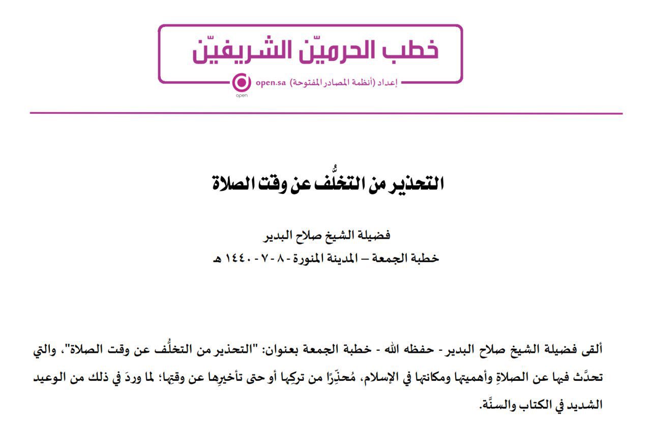 ولذا فإن النبي صلى الله عليه وسلم الذي لا ينطق عن الهوى حكم على تارك الصلاة بالكفر فعن جابر بن عبد الله رضي الله عنهما قال. والذي يوافق ٣٠ م ح ر م ١٤٤٢ الثلاثين من م ح ر م للعام ألف وأربعمائة واثنان وأربعون ١٨ من شهر ٩ عام ٢٠٢٠ ميلادية. خطبة الجمعة لفضيلة الدكتور الشيخ جميل حليم عن تحريم الرياء 09 03 2018 محاضرة الدكتور الشيخ جميل حليم التحذير من الافتراءات في بعض الكتب 07 03 2018.