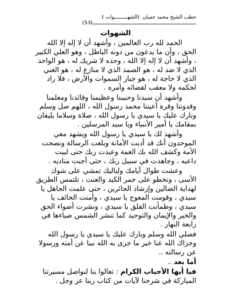 خطب الجمعة مكتوبة للشيخ محمد حسان Pdf